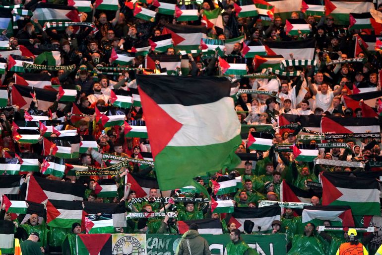 The match, which took place at the club’s home ground Celtic Park in Glasgow, saw thousands of fans wave the Palestine flag and display banners supporting the people of Gaza amid Israel’s war on the besieged strip.