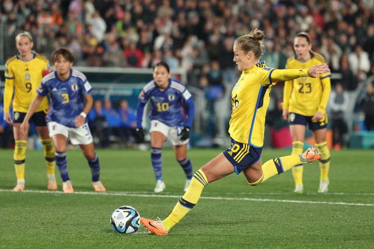 Riko Ueki’s penalty attempt for Japan in the 76th minute hit the crossbar and bounced clear of the goal, but Musovic was finally beaten in the 86th minute when substitute Honoka Hayashi cut Sweden’s lead to 2-1. But Sweden withstood some immense stoppage-time pressure to progress.