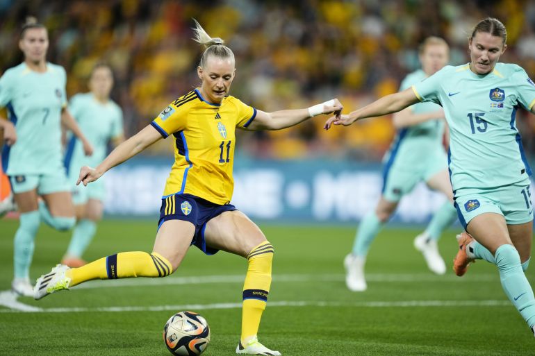 The Swedes, ranked third in the world, were awarded a penalty in the 28th minute of the game on Saturday after a VAR review showed Australia’s Clare Hunt clipped Stina Blackstenius’ heels, and Fridolina Rolfo slotted home the resulting spot kick.