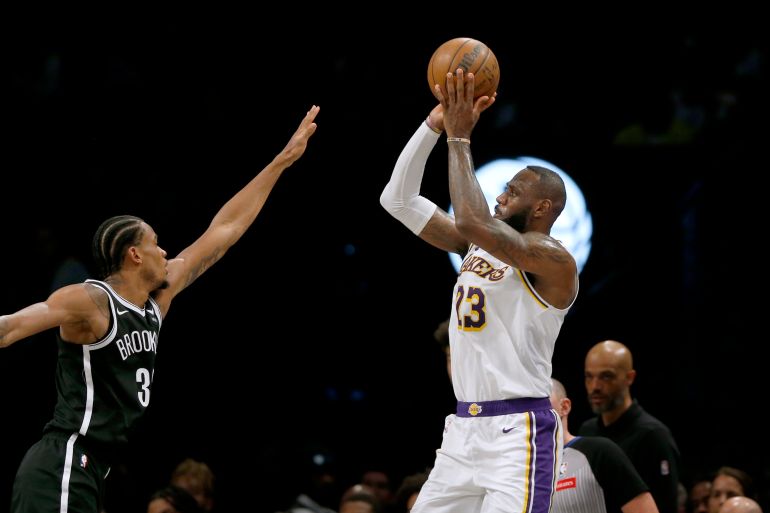 LeBron James ties a career high 3-point night as Lakers beat Nets 116-104