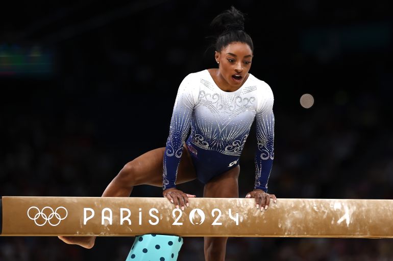 Biles’s earlier fall from the beam on Monday – one of several in the final – was the first major hiccup of her triumphant Olympic return, three years after a bout of the disorientating “twisties” cut short her Tokyo Games campaign.