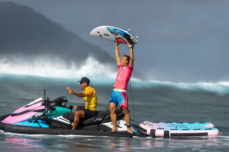 Winning on his home turf of Teahupo’o was “the cherry on the cake”, Vaast said. “For all of France, for all of Polynesia, it’s incredible.”