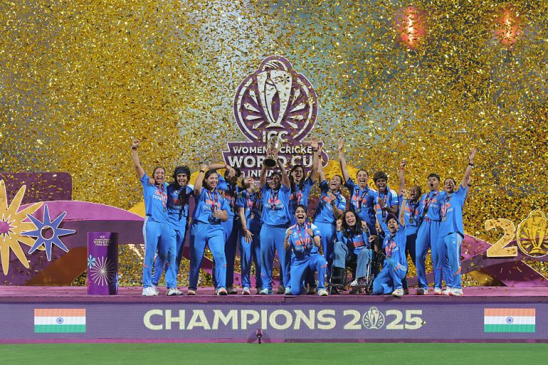 India’s women post 298-7 in Navi Mumbai before bowling South Africa out for 246 to claim the 2025 Cricket World Cup.