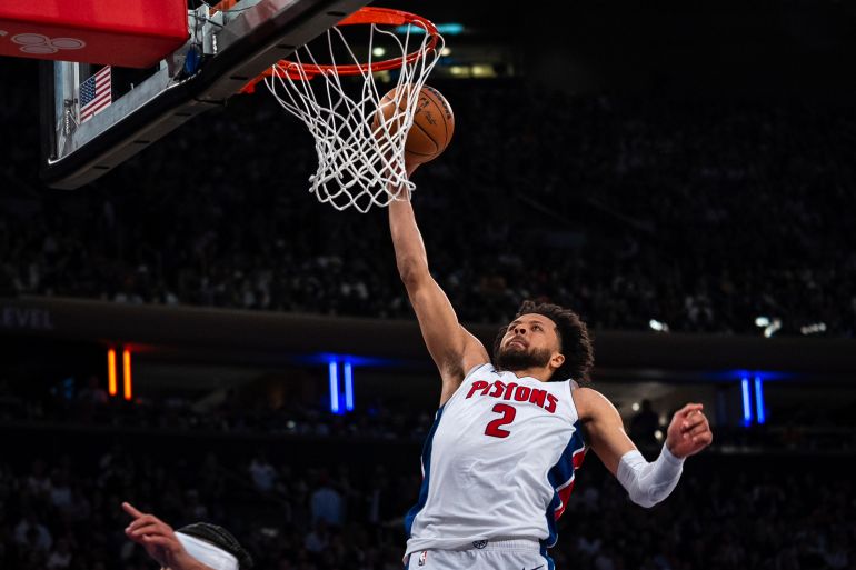 Detroit’s Cade Cunningham scored 33 points and grabbed 12 rebounds, and Dennis Schroder added 20 points off the bench, including a go-ahead three-pointer with 55.7 seconds left, as the Pistons thwarted the Knicks’ fourth quarter rally on Monday.