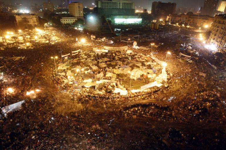 ![Riot police force protestors back across the Kasr Al Nile Bridge as they attempt to get into Tahrir Square on January 28, 2011 in downtown Cairo, Egypt. Thousands of police are on the streets of the capital and hundreds of arrests have been made in an attempt to quell anti-government demonstrations [Peter Macdiarmid/Getty Images]](https://www.aljazeera.com/wp-content/uploads/2021/01/108473126.jpg?resize=770%2C513&quality=80)
