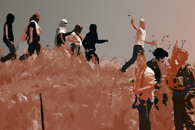 A mob of Israeli settlers attacked Palestinians who were out among their olive groves.