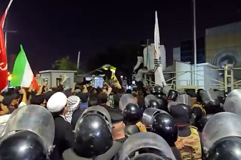 Protesters in Iraq swarm Kuwaiti consulate after deadly rocket attack