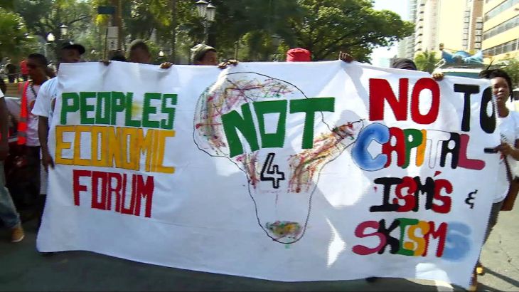 This year’s meeting focuses on “inclusive growth” for the continent, but protesters fear the poor are being left behind.