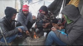 Along Bosnia’s border with Croatia, hundreds of refugees and migrants remain stranded in a makeshift camp, despite concerns for their welfare in freezing conditions.