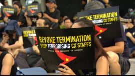 They say the airline’s decision to fire 20 of its staff for taking part in anti-government protests is creating a climate of fear.