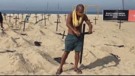 COVID-19 in Brazil: Copacabana beach filled with symbolic graves