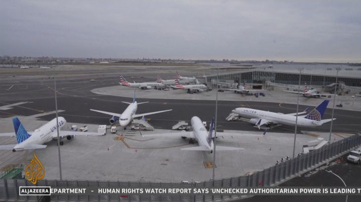 Thousands of flights were disrupted – domestic and international – with delays to planes heading to the US from elsewhere.