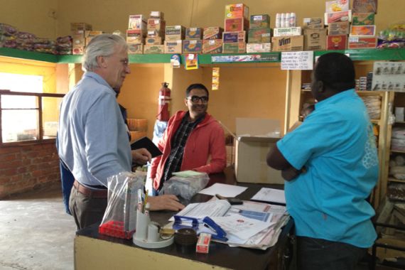 | ColaLife founder Simon Berry talks with Brian, a male nurse at the Siachitema Health Centre. [SIMON BERRY/SARIKA BANSAL] |