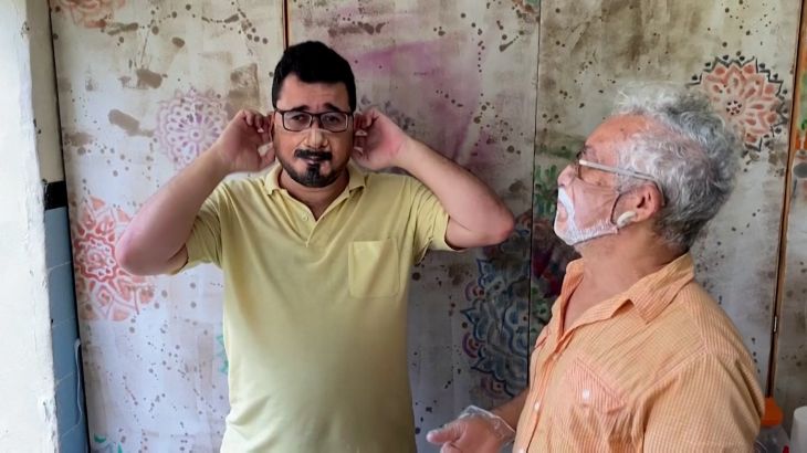 Meet the Brazilian artist who paints impressively realistic faces on protective masks.