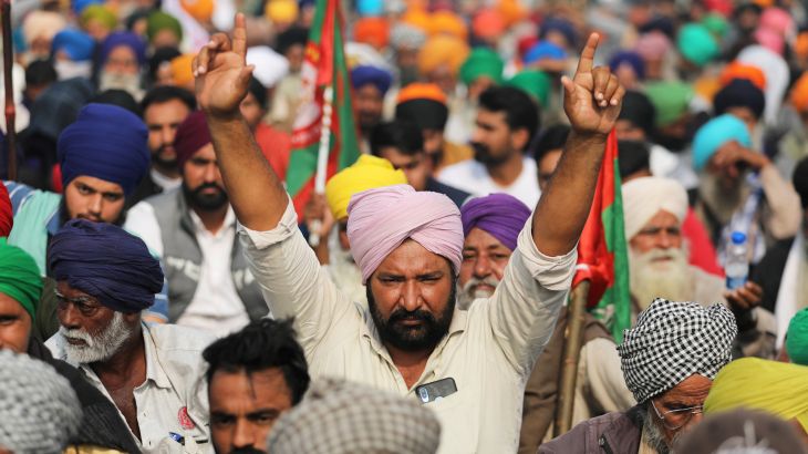 The protesting farmers say new Indian agricultural laws remove minimum pricing for farm produce and open up the sector to private corporations.