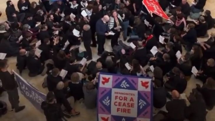 Around 150 people were arrested after a sit-in protest inside the US Congress calling for a ceasefire in Gaza. Members of the group Mennonite Action sang songs and hymns as they called for peace and justice.