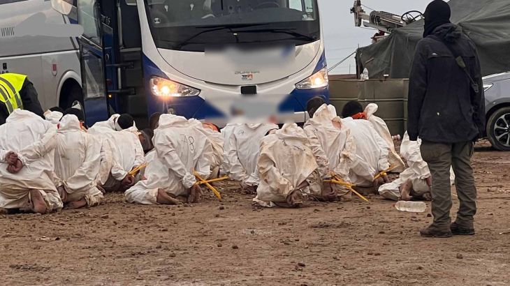 A group of Palestinian detainees from Gaza have been seen blindfolded and handcuffed in detention in Israel.