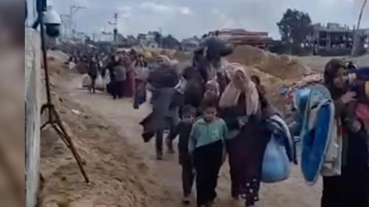 Israeli soldiers can be heard taunting Palestinian women and children as they passed by a checkpoint to monitor people being forcibly displaced in southern Gaza. The soldiers are also heard mocking leaders of Hamas over the loudspeaker.