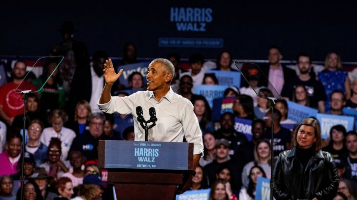 Former US President Barack Obama rapped lyrics from Eminem’s ‘Lose Yourself’ after being introduced by the artist himself at a rally for Kamala Harris in Detroit.