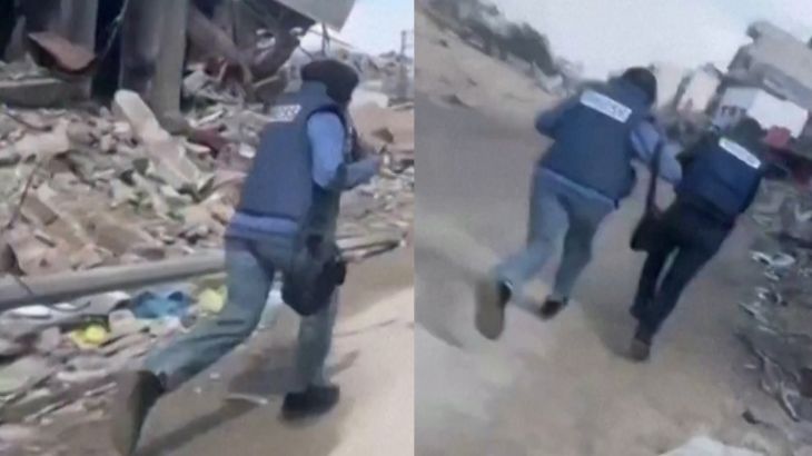 Palestinian journalist Hossam Shabat filmed himself and colleagues fleeing Israeli fire in Gaza, which he says was deliberately directed at them.