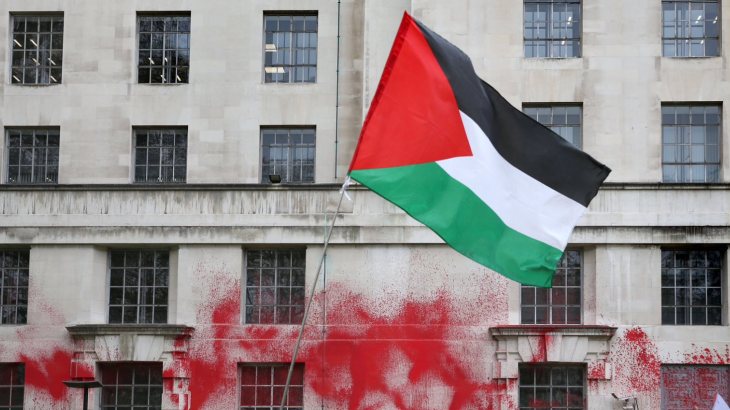 Activists protesting Britain’s arms sales to Israel doused the UK’s Ministry of Defence building with red paint. As other demonstrators gathered, chanting, ‘Stop the bombing,’ 5 of the activists were arrested by police.