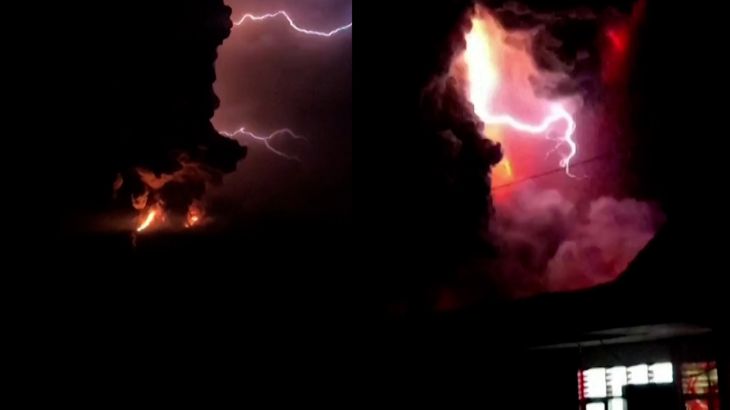 Video shows a spectacular lightning storm during an eruption on Indonesia’s Mount Ruang volcano. Hundreds of people have been evacuated from the area.