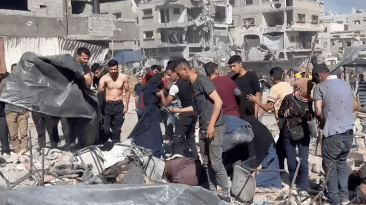 Distressing images show the immediate aftermath of an Israeli attack on an internet access point in Gaza City. At least three people are confirmed to have been killed and dozens of others critically injured.