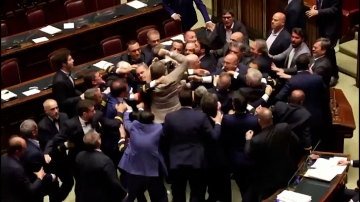 A brawl breaks out in Italian parliament over reforms