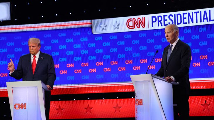 Donald Trump accused US President Joe Biden of being soft on Hamas and Biden defended his support for Israel during the first presidential debate of this year’s election campaign.