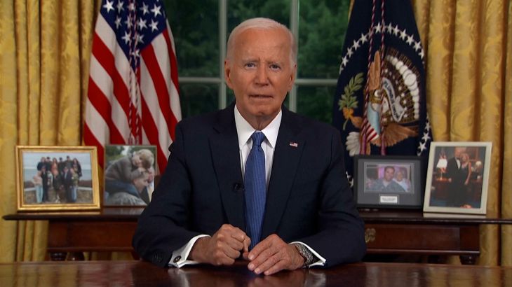 US President Joe Biden explained his decision not to seek re-election in a speech from the White House, saying it was time to ‘pass the torch to a new generation’ and insisting that America’s democracy is at stake in the vote.