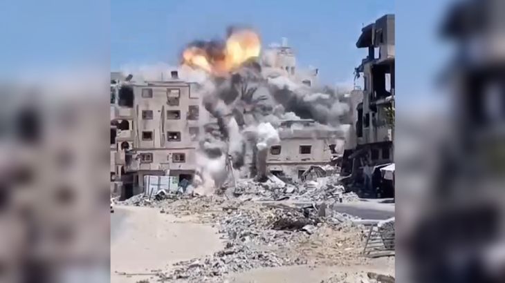 Video shows the moment an Israeli air strike destroys a house belonging to the al-Farra family in Khan Younis.