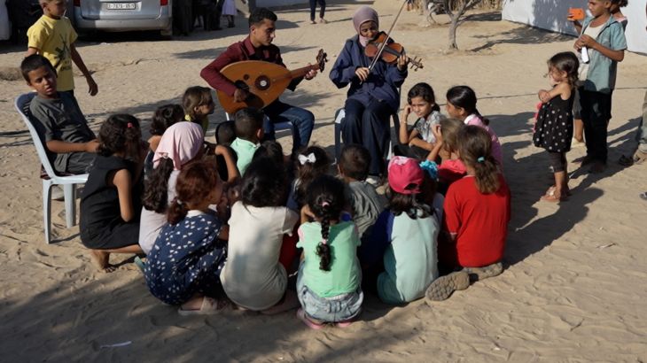 Gaza music students use talent to inspire children displaced by war