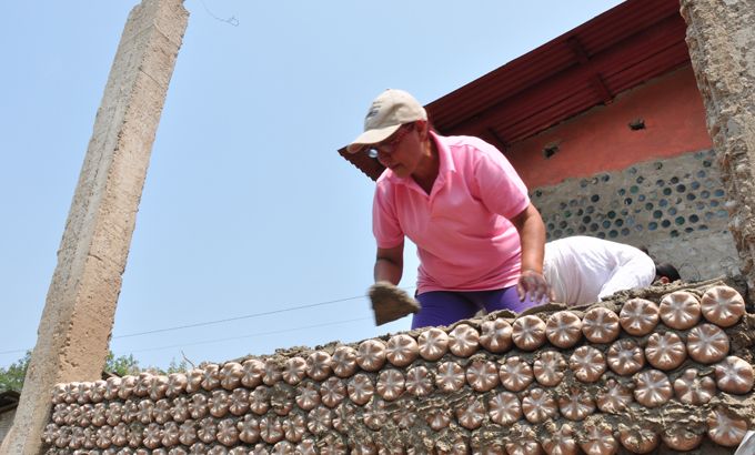 Though completely self-taught, she designs and builds new homes using recycled plastic bottles filled with dirt as the “bricks”. So far, she has built 10 of these homes.