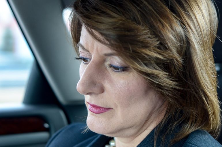 Scenes from the Albanian heartland blur in the distance. The president’s close protection officer sits silently in the front seat, occasionally turning to ask Jahjaga if she needs anything.