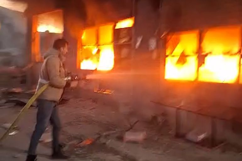 Video shows Lebanese firefighters trying to put out flames in the southern city of Maarakeh.